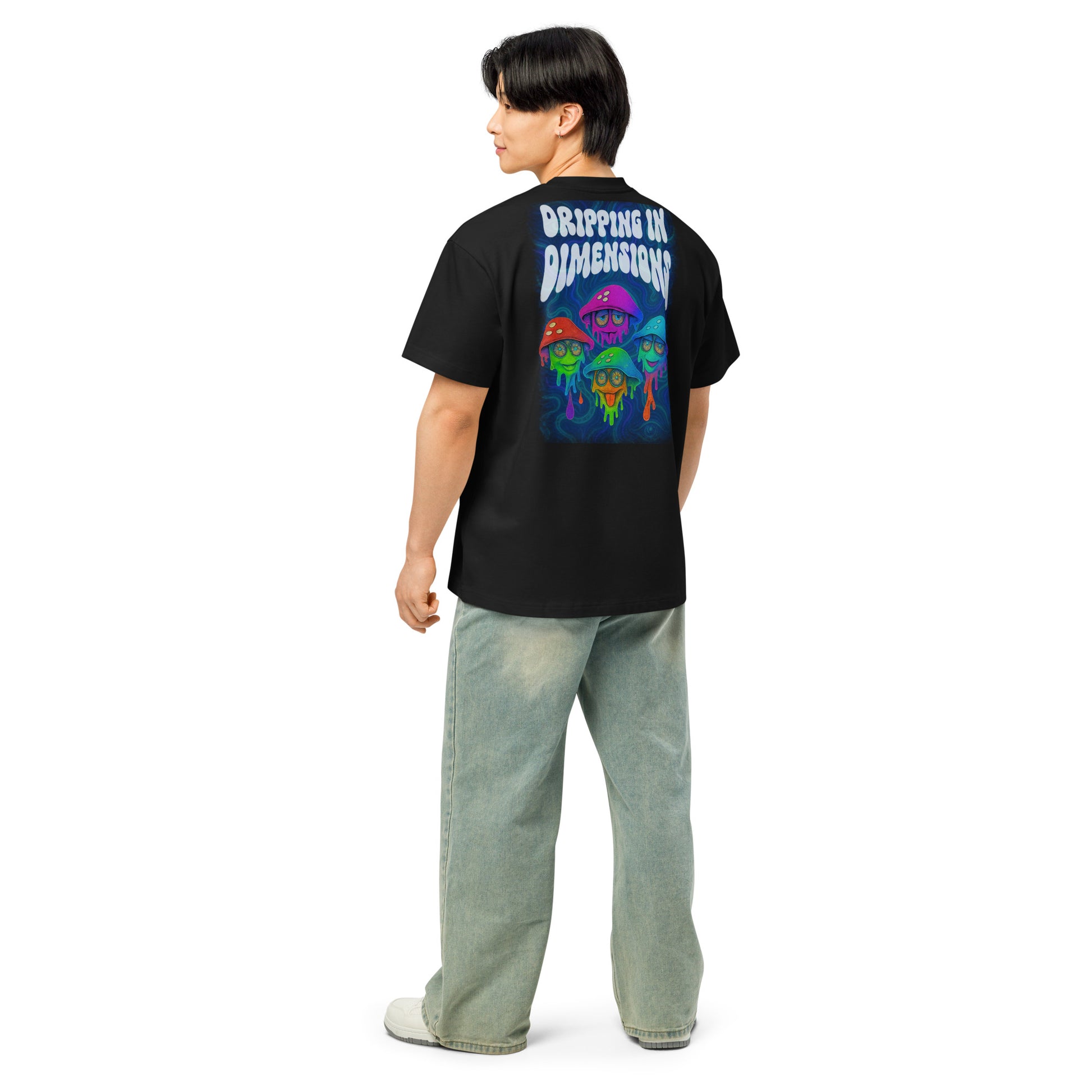 “Dripping in Dimensions” dives into a psychedelic multiverse where color, consciousness, and character melt together. The design showcases four trippy, dripping mushrooms, each with hypnotic eyes and vibrant neon tones that look alive — as if they just slipped out of another dimension.